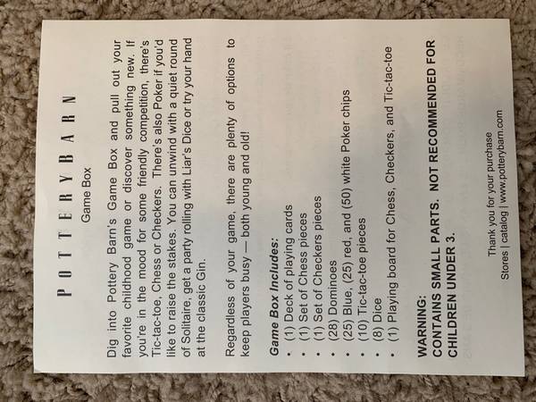 Pottery Barn Game Box - New - Never Used. Multiple Games in one box