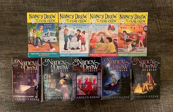 This offer is for a Lot of Nancy Drew Clue Crew Books and Nancy Drew Diaries. These books are all paperback books in good to excellent condition from a smoke free/pet free home. There are 4 Clue Crew Books and 5 Nancy Drew Diaries Books in this lot. I am offering them all as a lot of 9 books for only $12! But if wanting only one book from this lot, the price would be $5 for one book, $7 for 2 books and $10 for 3 books. Otherwise, only $12 buys all 9 books listed in this lot!