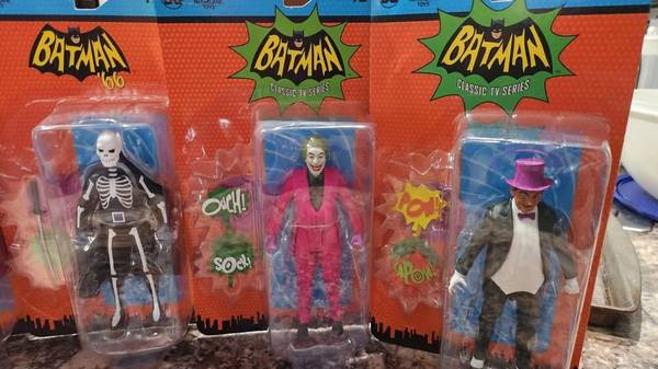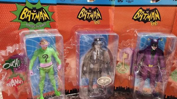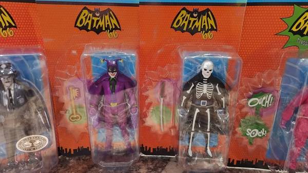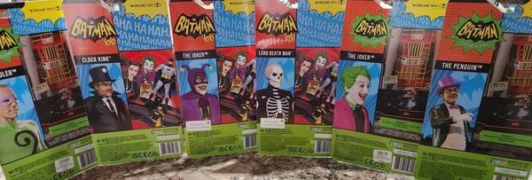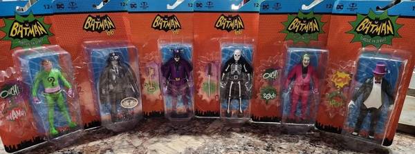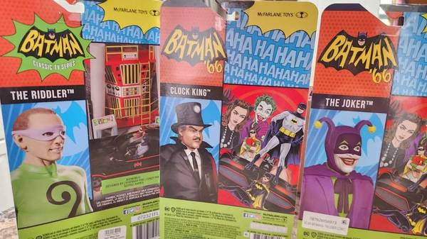 The McFarlane Toys DC Retro Action Figure Batman 66 Lot includes various characters from the Batman franchise such as the Joker(s), Penguin, Lord Death Man, Clock King and The Riddler. These 6-inch plastic figures are in 1:12 scale and come in their original, unboxed packaging. With adjustable features and detailed designs, these action figures are perfect for fans of the Batman TV show and movies, and are suitable for collectors and enthusiasts aged 12-16 years and above. Unopened and in great shape!