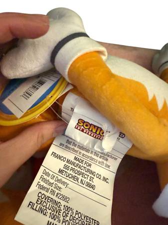 This soft and snuggly Tails plush from the Sonic the Hedgehog franchise is a fan-favorite cuddle pillow buddy by Franco. Measuring approximately 17 inches, it features Tails’ signature orange fur, twin tails, red shoes, and embroidered blue eyes. Whether used as a pillow, display piece, or gift, it’s perfect for Sonic fans of all ages.