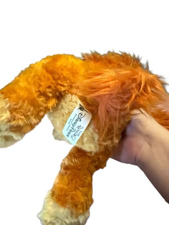 This adorable plush features Lady, the beloved cocker spaniel from Disney’s Lady and the Tramp. With her expressive embroidered eyes, floppy brown ears, and soft cream-and-tan fur, she’s a nostalgic favorite for Disney fans and plush collectors alike. The attached tag includes printed writing, confirming original materials and care instructions—ideal for verifying authenticity.