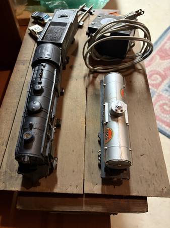 Santa brought this to me in the 1950's. I guess it is "S" scale. I have not put it together or tested it, but it has not been abused all these years. This was the "base" steam freight train set, I think. I have the steam engine with coal car, the Gulf oil tanker, the transformer and a box of track. I see curved and straight pieces in there.