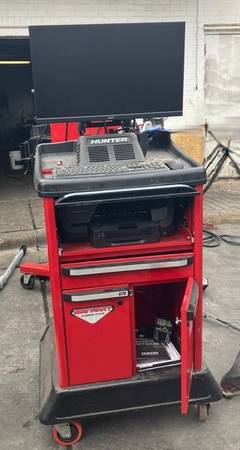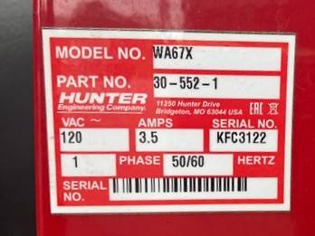 Est. 2021 Hunter WinAlign HD Truck Alignment System, w/ (1) WA67X Series Cabinet (S/N: KFC3122), (1) 27" Widescreen Monitor, (1) Printer, (6) DSP760T Wireless Sensors, (2) HD Quick Grip Adaptors, (1) Truck Pusher, (2) HD Mobile Turnplates, (1) Sensor Storage Cart, w/ Additional Related Accessories