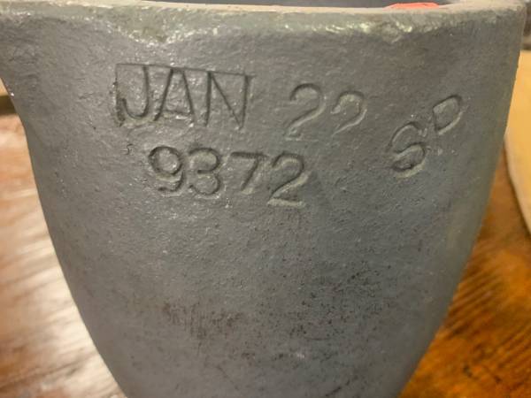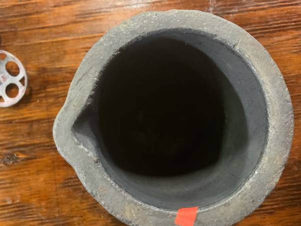 A new old stock silica-carbide foundry melting and pouring crucible. In excellent condition, not a china import. See pics for dimensions. Price is firm. No shipping.