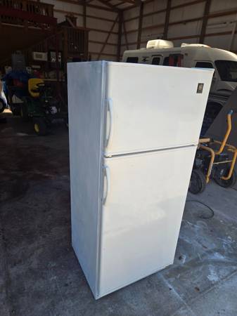 GE refrigerator/freezer. Nice small refrigerator/freezer. Temperature set for 37/0 degrees. Make a nice bar or shop refrigerator.