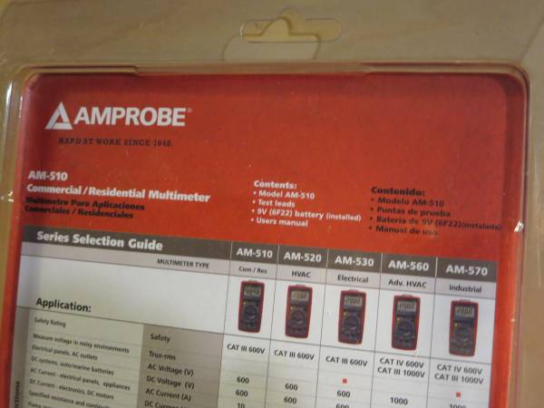 Amprobe Multimeter , Mod. AM-510 . with light . New . Real clean Face and screen , . Excellent condition , good working order . With leads , 35.00 Local pick up. Best contact by Phone . No Text , .