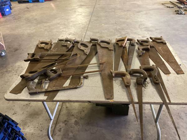 Collection of my carpenter father‘s hand saw all for $25 Must be gotten before Monday give me a text or leave me a message