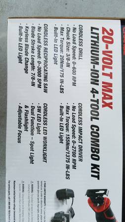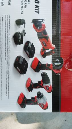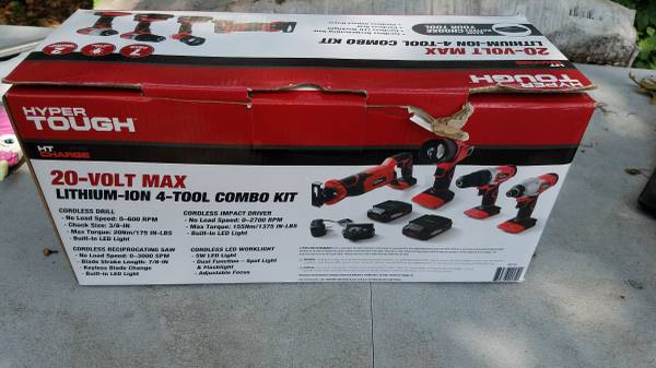 Hyper Tough 20 volt lithium 4 tool combo. NEW in box. AQ90146G Includes: -Cordless drill AQ75034G -Cordless impact driver AQ76012G -Cordless reciprocating saw AQ80023G -Cordless LED work light...