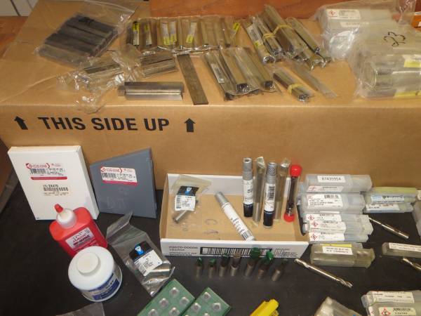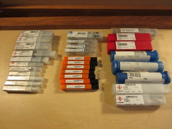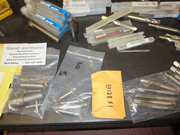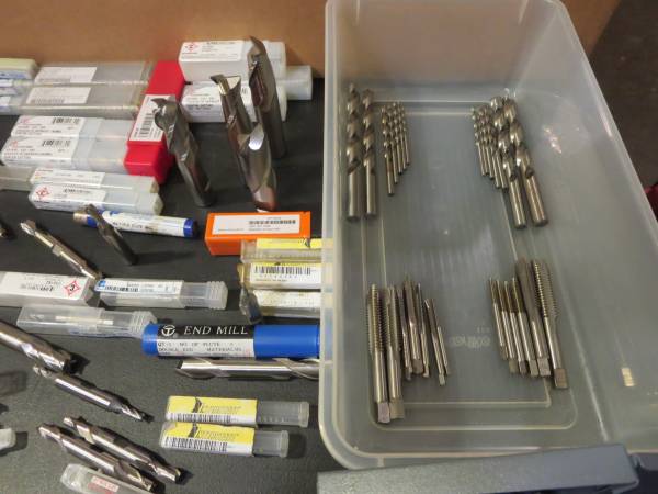 Machinist and Machine shop Tooling everything pictured is New. HSS End mills, Drill Bits , Taps, Boring Bars, Center Drills Counter Sinks , Cutting Tool Steel Tap oil , Die Marker , Swivel Clamps and Bars. Made in USA and other countries, everything pictured for sale $1.00 or $2.00 Dolars each nothing over $5.00. See picture for Model #'s and sizes. Lots of other tools for sale. Call for Local pick-up, no text. phone, Three One 4 - 4 Two Seven - Three Nine 4 Zero .