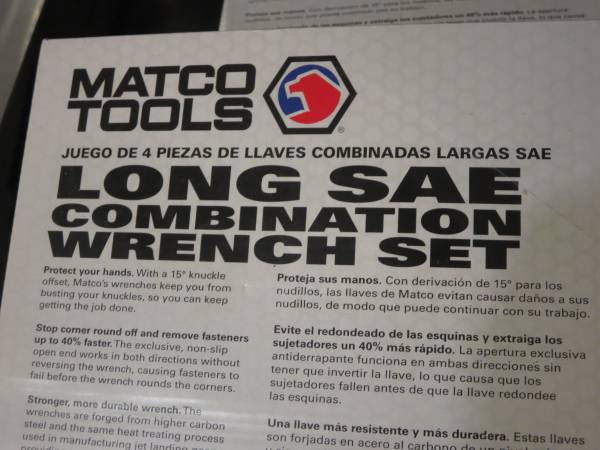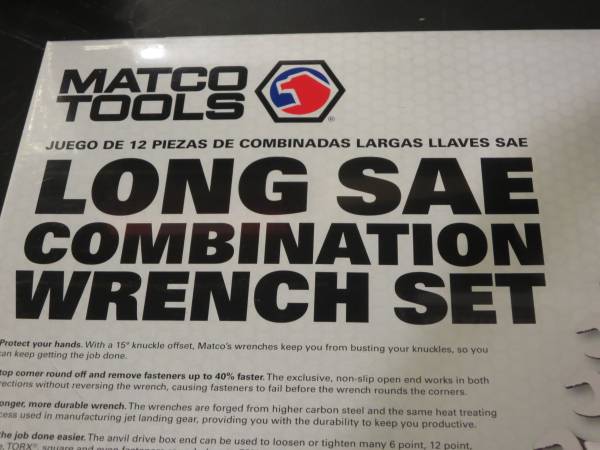 Matco Tools 16 pc. 2, Combination Wrench Sets. SMCL122K and SMCL42K . Nice sets , See pictures , sizes 1/4" through 1 1/4". Local pick-up" ..... phone ( no text ) show contact info