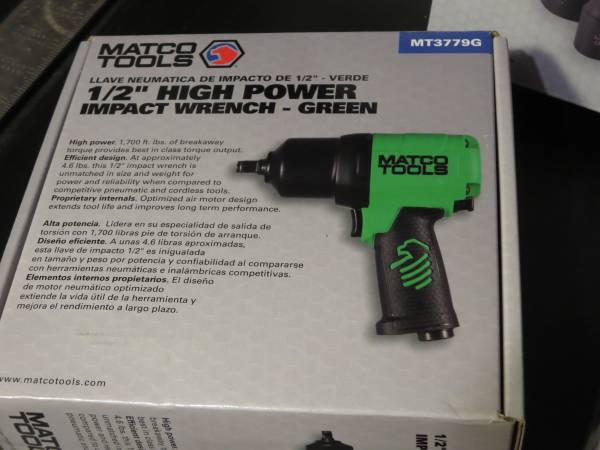 Matco Tools 1/2" Heavy Duty Impact Wrench , NEW, Excellent condition Good working Order, See pictures for Specifications . Local pick-up" ..... phone ( no text ) call Mark for info @ show contact info