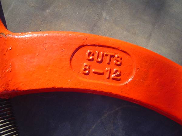 I am selling this Reed Hinged Pipe Cutter No. H-12 that cuts 8 to 12 inch pipe for $250. Works Great. It is 3 foot tall by 18 inches wide. I am located in Sullivan Mo. Call or Text 573-25nine-8395