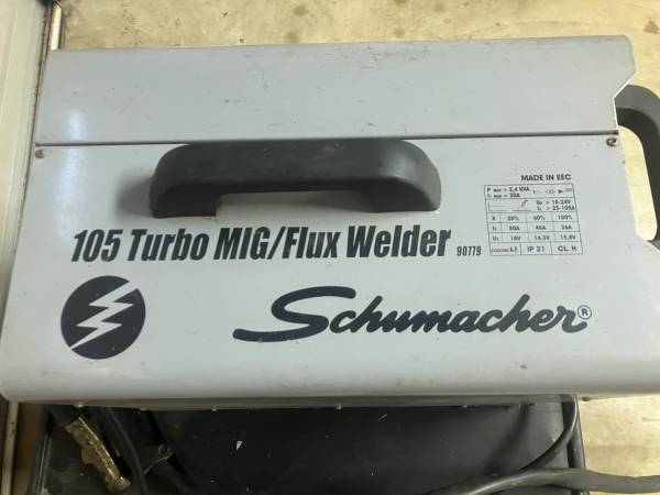 Used Schumacher 105 Turbo Mig/Flux welder. uses flux core wire. good condition. 115 volt. $75.00 Questions? Call or Text Scott @six3six-3one8-two838. Always remove post once item sells. NO SCAMMERS,...