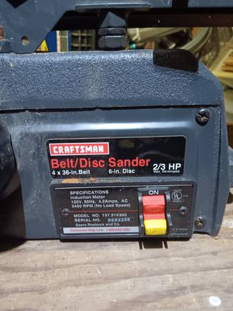 I'm in washington mo, which is about 40 miles West of St Louis MO. Please text. Three one four. 960. 1496. Works fine. Ryobi 6 inch disc 4x36 Inch belt sander, $80. Craftsman 6 inch disc and 4x36...
