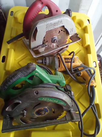 I don't text. Selling 2 radial saws and a drywall screw gun. Milwaukee circular saw needs a new cord but it will work. Hitachi works but bottom plate is broke and cord has tape on it. Dewalt screw gun works but the end of it is missing and is still available new last time I looked. Price gets it all. I try to check email once a day but only during the week.