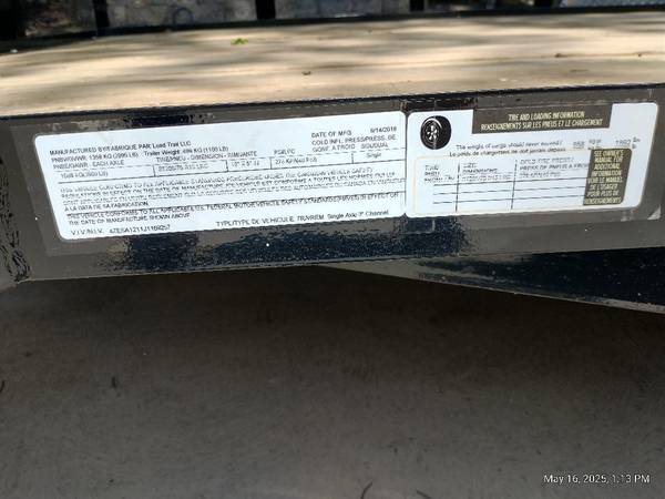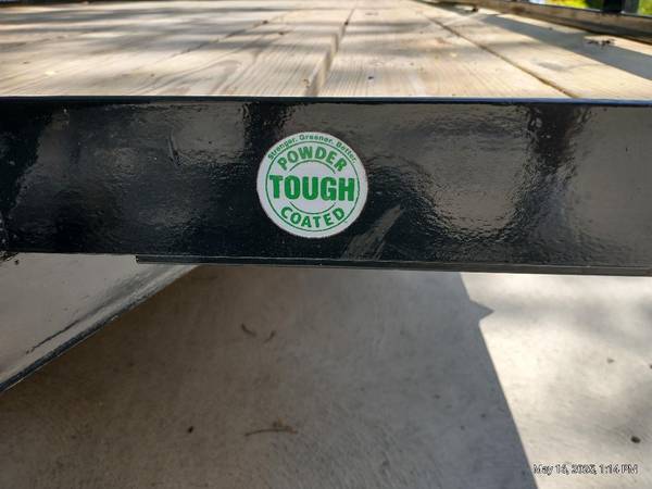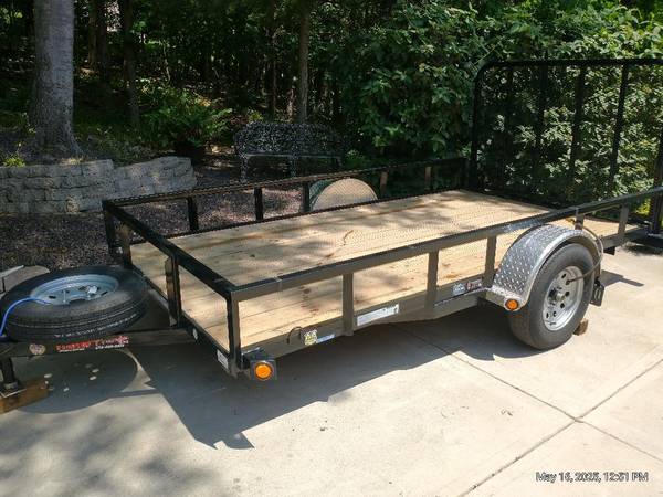 Utility trailer manufactured by Load Trailer. 6 1/2 ft. wide x 12 ft. with treated wood bed. Comes with removable wood sides for protecting items you are hauling. Trailer has powder coated paint, diamond aluminum fenders, four tie down hooks, spare tire mounted on trailer, rear drop mesh gate with extra support made with 2 inch square tubing, trailer tires have 15inch rims, axle has easy to grease bearing Buddys, 2 inch square tubing side rails, 3 inch c-channel frame, 2 inch receiver hitch.