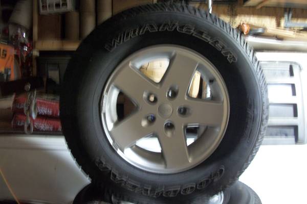 5 Wheels (5-127mm) with lugs (1/2 x 20) 5 Tires Goodyear Wranglers P255/75/R17 Tires have 95% tread and are clean.$900 This set is aired up and ready to mount and go.