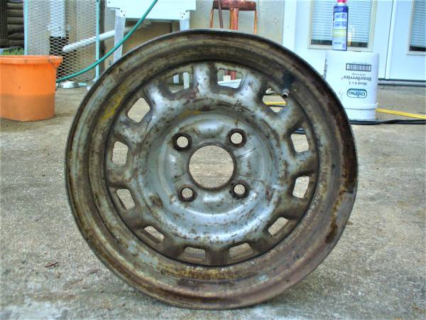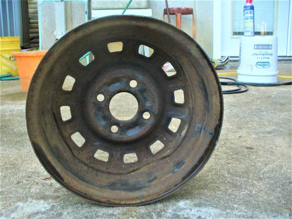 Look closely at the photos as the wheel is used with scratches, dings, paint loss and surface rust. $20. Please call/text 9 am. - 8 pm. Three one 44 zero 2 zero 24 Nine.