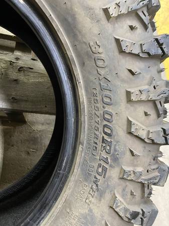 2-30x10x15 and 2-30x11x15 8-ply tires off a 2024 Polaris Xpedition. Tires have no damage, no leaks, no repairs or problems. Went to larger size. Firm on price. Lots of tread left. Text for info