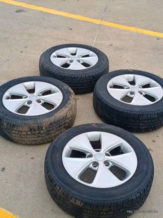 I HAVE FOR SALE A SET OF FOUR 205/60/R16 DOUGLAS PERFORMANCE TIRES BARELY USED BEEN SITTING ON A VEHICLE I HAVE HAD FOR LITTLE OVER 2 YEARS THE TIRES ARE 3 YEARS OLD WITH NO DRY ROT AND MOST OF THE TREAD STILL ON THEM. THE RIMS ARE FROM A 2015 KIA SOUL SELLING THE SET OF TIRES AND RIMS FOR $350 OR BEST OFFER THERE IS A PIC OF EACH WHEEL THERE'S ALSO A PIC OF EACH TIRE INDIVIDUALLY AS WELL AS THE TREAD ON EACH TIRE AND THEN THE SET IF YOU HAVE ANY QUESTIONS FEEL FREE TO INQUIRE. YOU CAN REACH ME AT show contact info