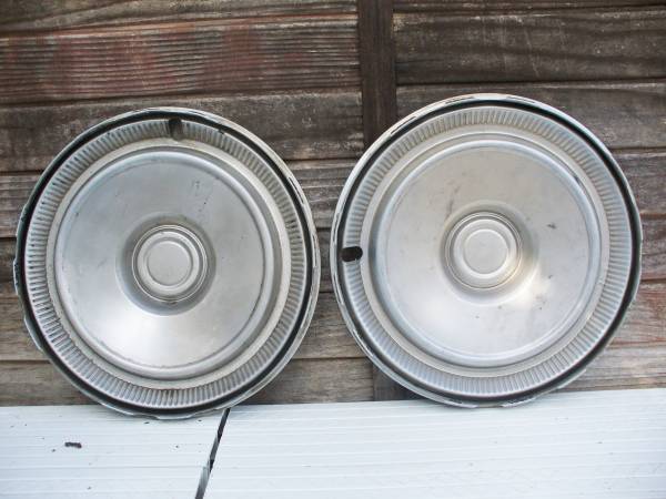 Two used 14 inch Plymouth wheel covers. Orginally used on 1975-76 Plymouth Passenger cars and 1976-79 Plymouth Volare but, will fit most 14 inch RWD steel wheels. Look at photos closely, they do have a few scratches and dings. $10 each or $18 for the pair. Please call/text 9 am. - 8 pm. Three one 44 zero 2 zero 24 nine.