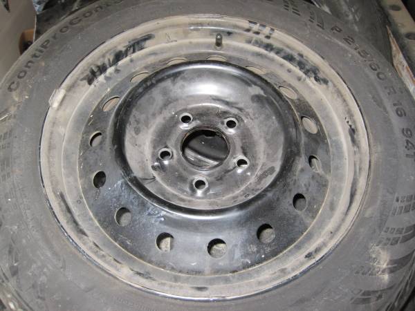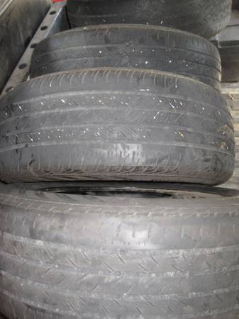 Be patient on a response back through email only. Cash only. I don't know what these came off or what they'll fit other than Nissan is stamped in the rim. The tires are 215/60-16, they are 5 bolt. Wore tread, probably better just as rollers but you can judge for yourself. Rims are steel. Price takes all 4. I can load for you. I usually only check email once a day but not on weekends.