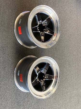 Original part # 71mb-510A75A Ford 5x4.5 bolt pattern 7.50 backspacing Approx 500 miles and 30 passes on wheels Ran wheels on 12 Shelby GT 500 - selling new for $700 each