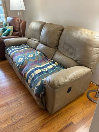 Free clean sofa, reclines on one side and is in decent shape and very comfortable. Great for taking naps! The surface is worn in a few spots and looks great with a cover on it. The three back...