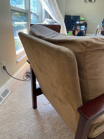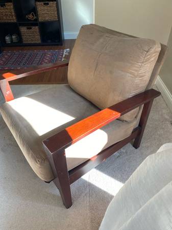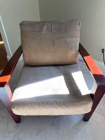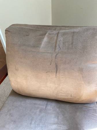 Free mid-century modern style chair, very used and worn. Covers can be replaced, and chair fixed up for someone willing to put in the time.